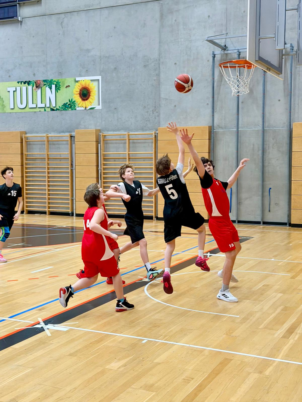Ein bärenstarke Leistung zeigten die Burschen der 2A, 2S und 3S beim Basketballturnier mit Vereinsspielern in Tulln. Angeführt von Mario Kriwetz und Alexander Mayer konnten die drei Spiele mit 53:23 (Mistelbach), 45:17 (Klosterneuburg) und 36:23 (Tulln) gewonnen werden. Mit einer ähnlichen Leistung im Halbfinale könnte die Verteidigung des Landesmeistertitels Realität werden.
