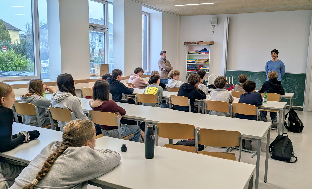 Kurz vor Weihnachten empfing die 4RG zwei ehemalige Schüler des RG-Zweigs. Im Rahmen der Berufsorientierung und Bildungsberatung erzählten Bardi Krasniqi (Studium der Finanz- und Versicherungsmathematik) und Mag. Max Magoy (Studium des Wirtschaftsrechts an der WU) von ihren persönlichen Erfahrung im Gymnasium, ihrem Weg nach der Matura und neuen Herausforderungen am Arbeitsmarkt.