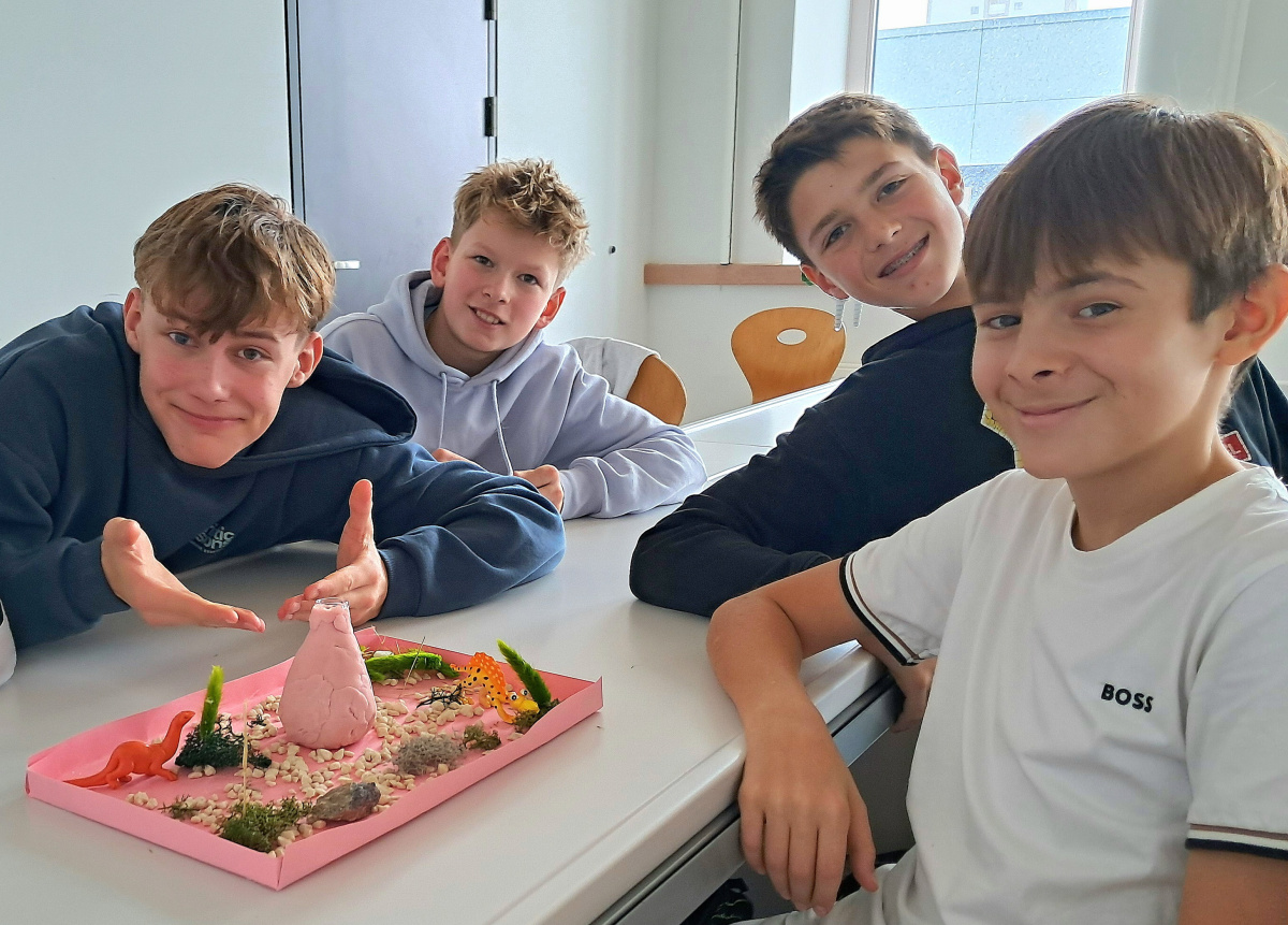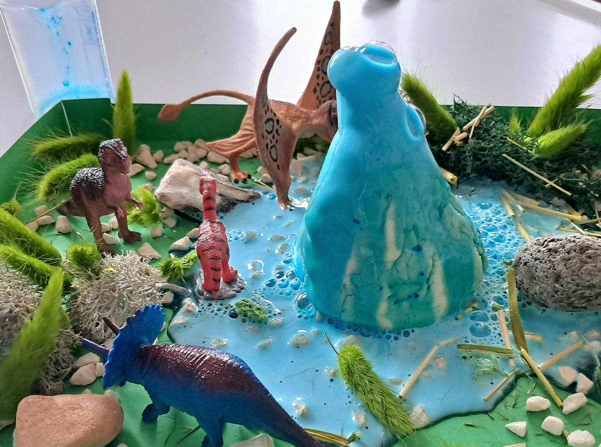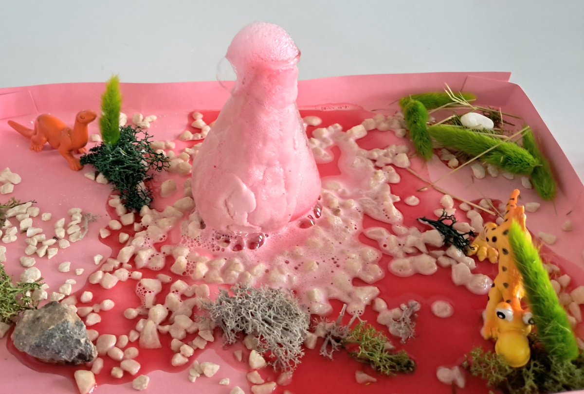 Im Biologieunterricht entstand aus bunter Knetmasse ein kleiner Modellvulkan, der die gewaltigen Kräfte im Miniaturformat veranschaulichen sollte.