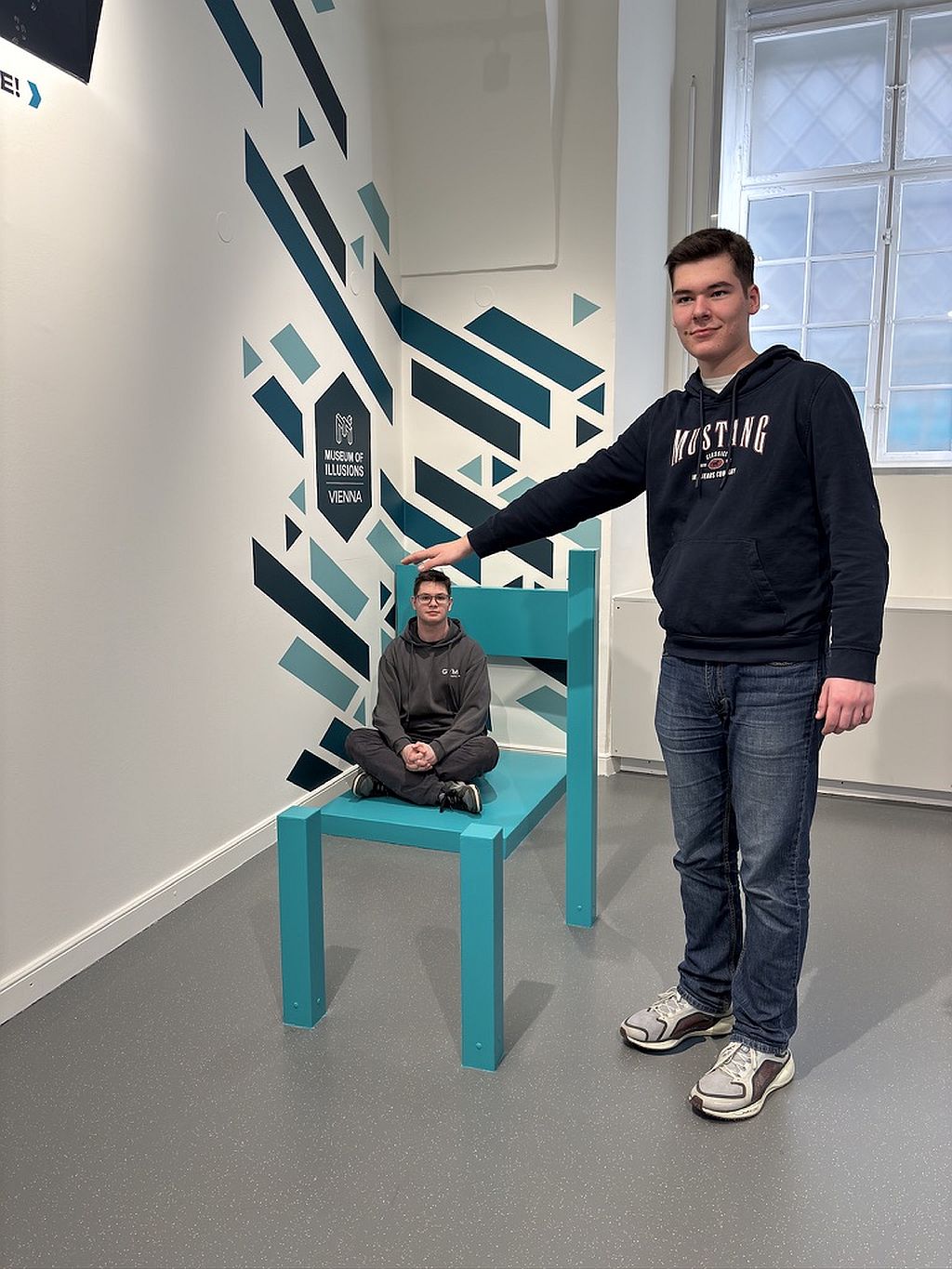 Ganz anders präsentierte sich anschließend das Museum der Illusionen. Hier standen interaktive Experimente im Mittelpunkt, die die Wahrnehmung herausforderten. Die Schüler*innen konnten selbst ausprobieren, wie leicht sich das Gehirn täuschen lässt, und erlebten dabei überraschende und unterhaltsame Effekte.