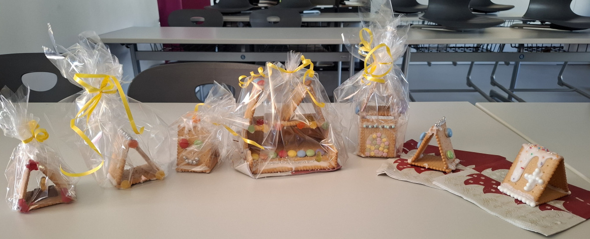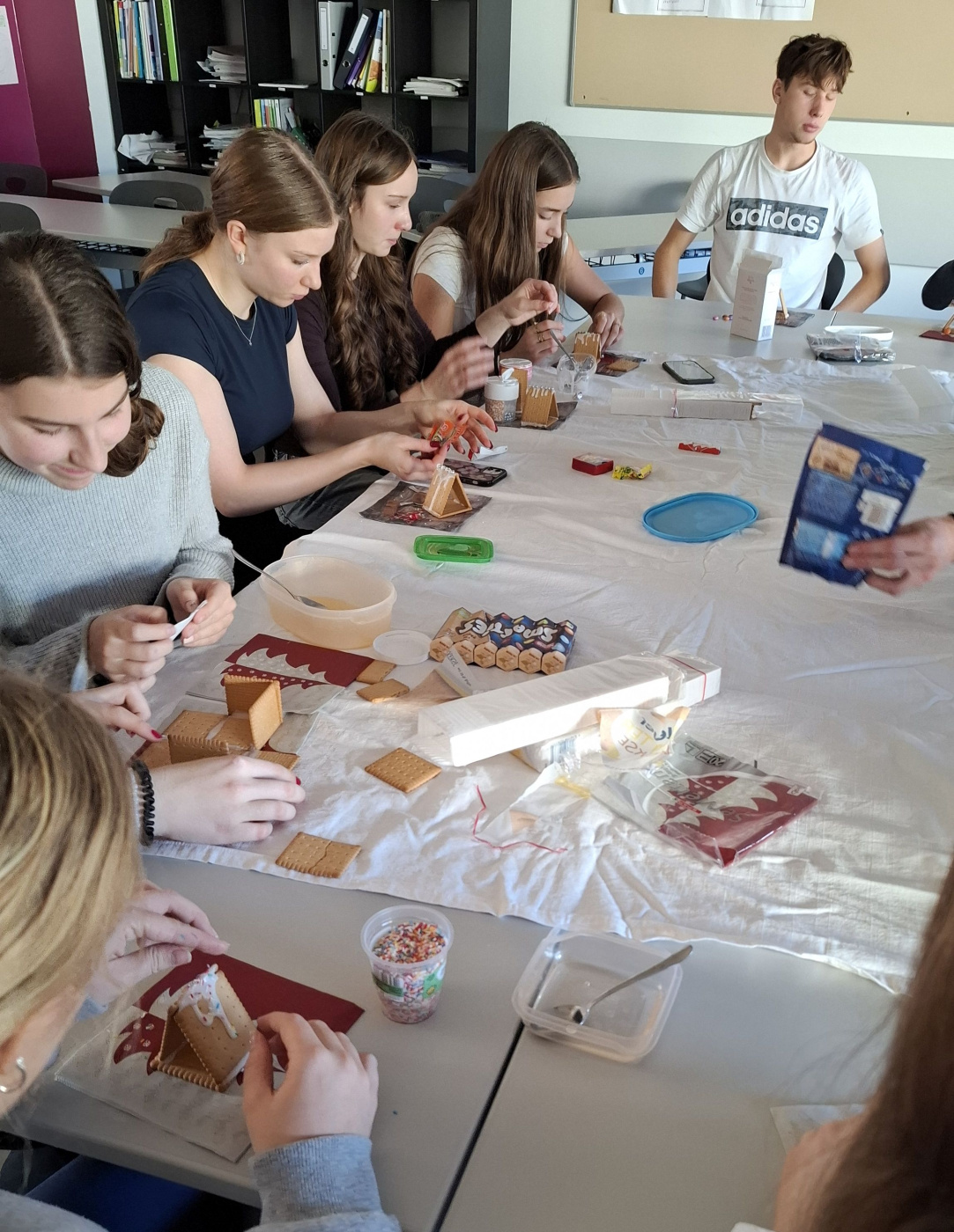 Im Religionsunterricht der 7. Klassen bei Prof. Streimelweger und Prof.in Berger wurden Butterkekshäuschen gebaut und liebevoll verziert. Manche ganz schlicht – manche erinnerten sogar an eine Krippe. Es waren schöne abwechslungsreiche Weihnachtsstunden. Die Butterkekshäuschen wurden sorgfältig verpackt und verschenkt oder mit nach Hause genommen.
