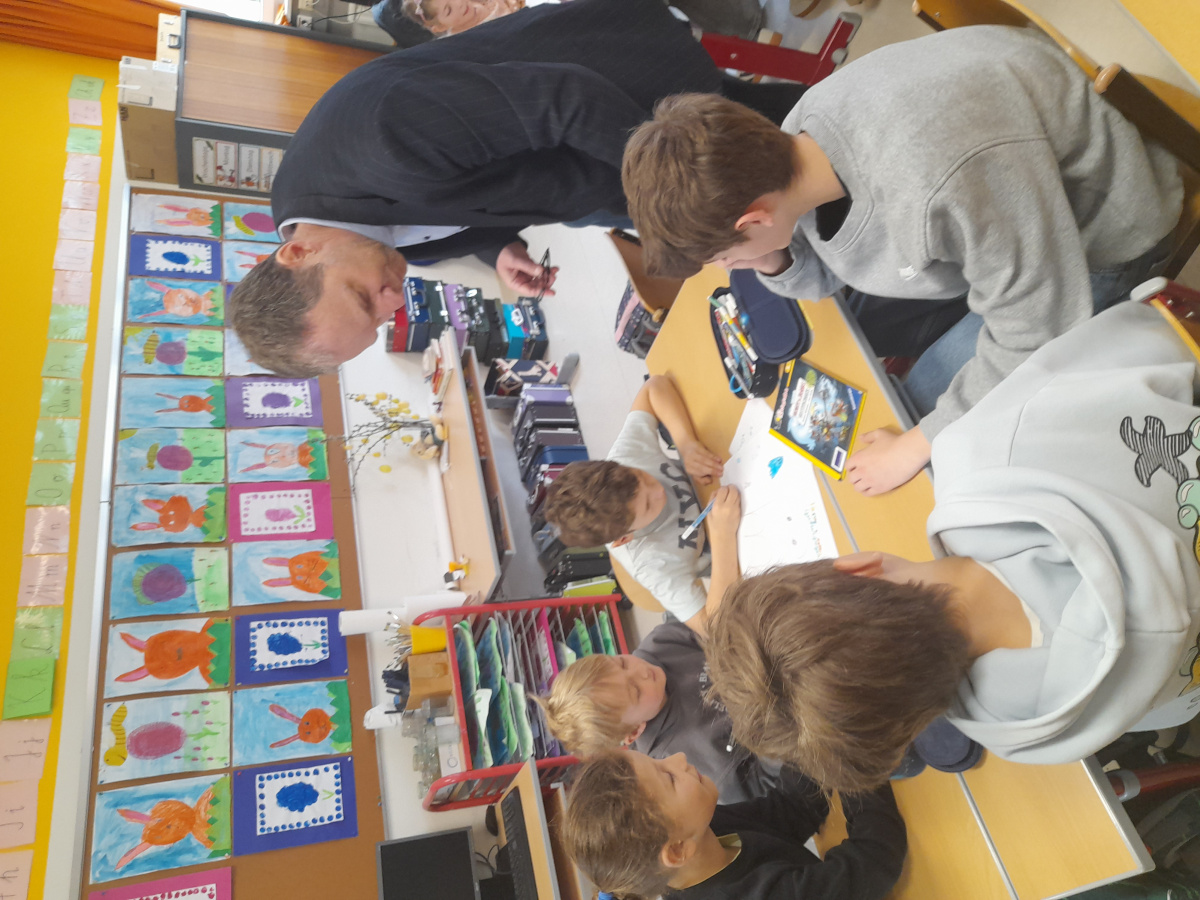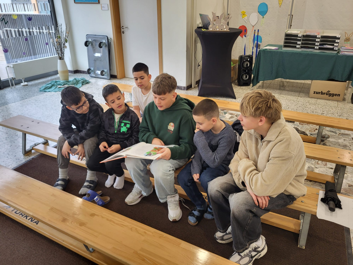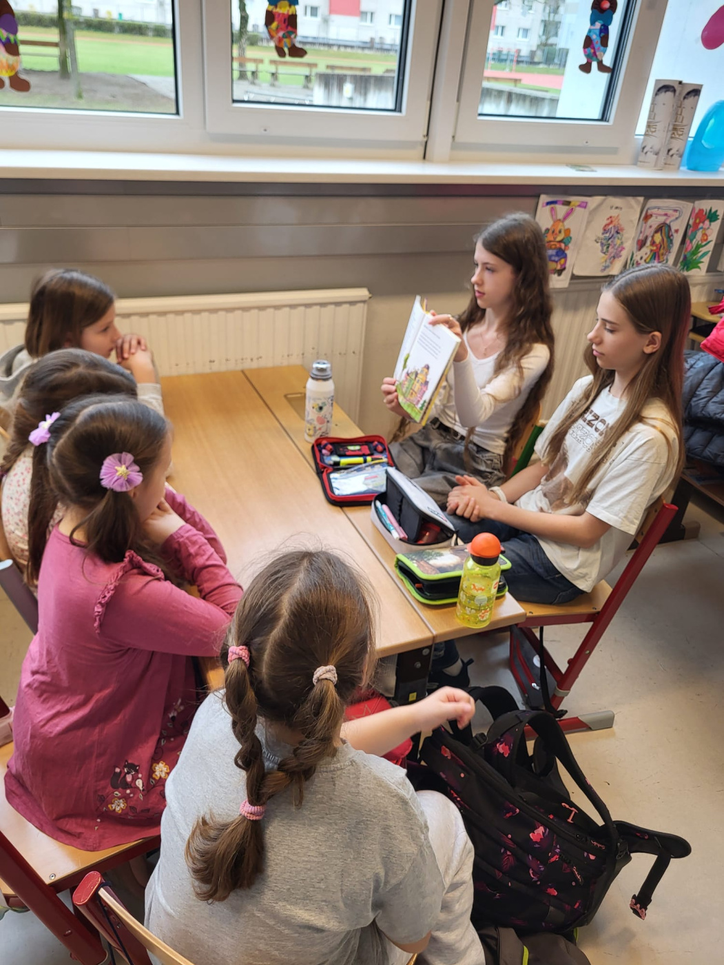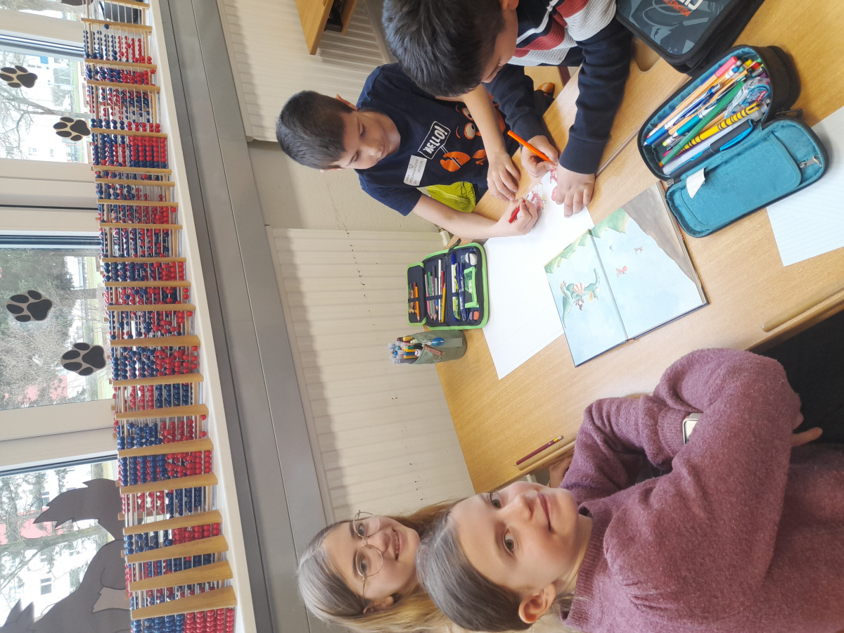 Nicht nur die “Kleinen” lauschten den Geschichten gespannt, sondern auch Direktor Schrittwieser war ganz begeistert. Die VS-Kinder konnten die Quizfragen ohne Probleme beantworten und wurden dafür von den “Großen” mit ein paar Süßigkeiten belohnt. Im Anschluss gestalteten die Kinder gemeinsam Plakate zu den Büchern, die nun in der VS Franz Jonas bewundert werden können.