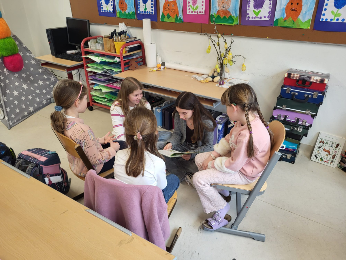 Anlässlich des österreichischen Vorlesetags am 26.3.26 besuchten die 3G1 und 3G2 gemeinsam mit ihren Lehrerinnen Mag. Kaiser und Mag. Mayr die drei 2. Klassen unserer Lesepartner- und Nachbar-VS Franz Jonas und lasen den Kindern aus den Lieblingsbüchern aus ihrer eigenen Volksschulzeit vor.