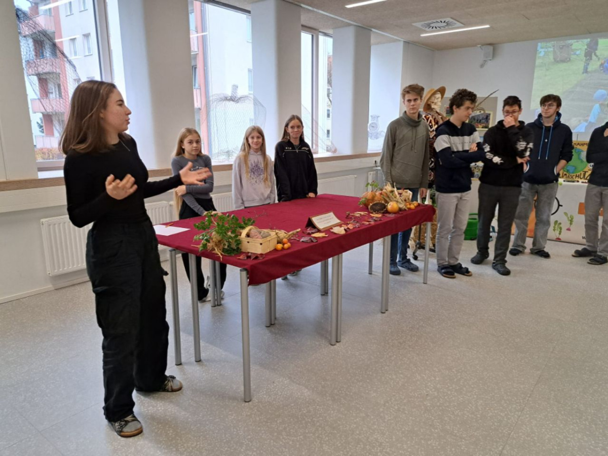 Am Vormittag besuchten mehrere Klassen die Ausstellung, um einen Rückblick auf das Ackerjahr zu erleben. Die Schüler*innen der 4N2 führten durch die Präsentation, erzählten von ihren Erfahrungen und verdeutlichten, wie viel Teamarbeit und Wissen hinter dem Projekt steckt.